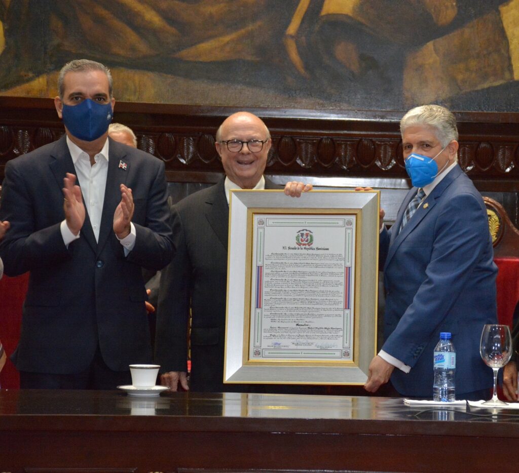 El Senado reconoció este jueves al expresidente Hipólito Mejía (2000-2004) por sus «innumerables aportes» a la agropecuaria y a la agroindustria del país, en una ceremonia a la que asistió el gobernante Luis Abinader.