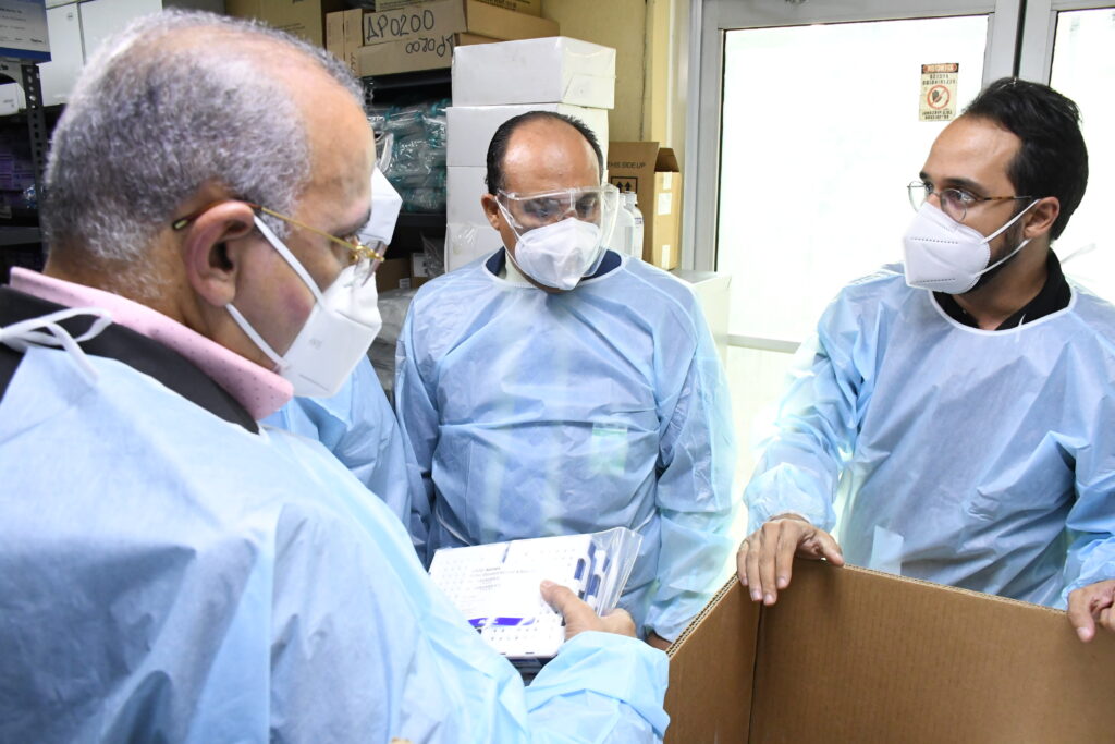 En el trayecto, el doctor Plutarco Arias  estuvo acompañado de los doctores Eddy Pérez Then, asesor del Ministerio de Salud Pública; Alejandro Vallejo Degaudenzo y Carlos Vergara, del Instituto de Salud Global y Biotecnología de la Escuela de Medicina de la Universidad O&M del Laboratorio Nacional.