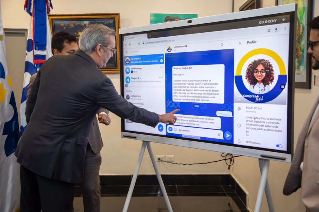 Destacó que, bajo el principio de máxima publicidad y transparencia, hoy se presenta Lici Compras, una asistente virtual en la plataforma de mensajería instantánea Telegram, mediante la cual los usuarios pueden consultar información sobre los requisitos y solicitudes del Registro de Proveedores del Estado, descargar su constancia de RPE, revisar histórico de contratos, procesos y estadísticas relacionadas a unidades de compras, descargar pliegos de condiciones, entre otras funcionalidades.