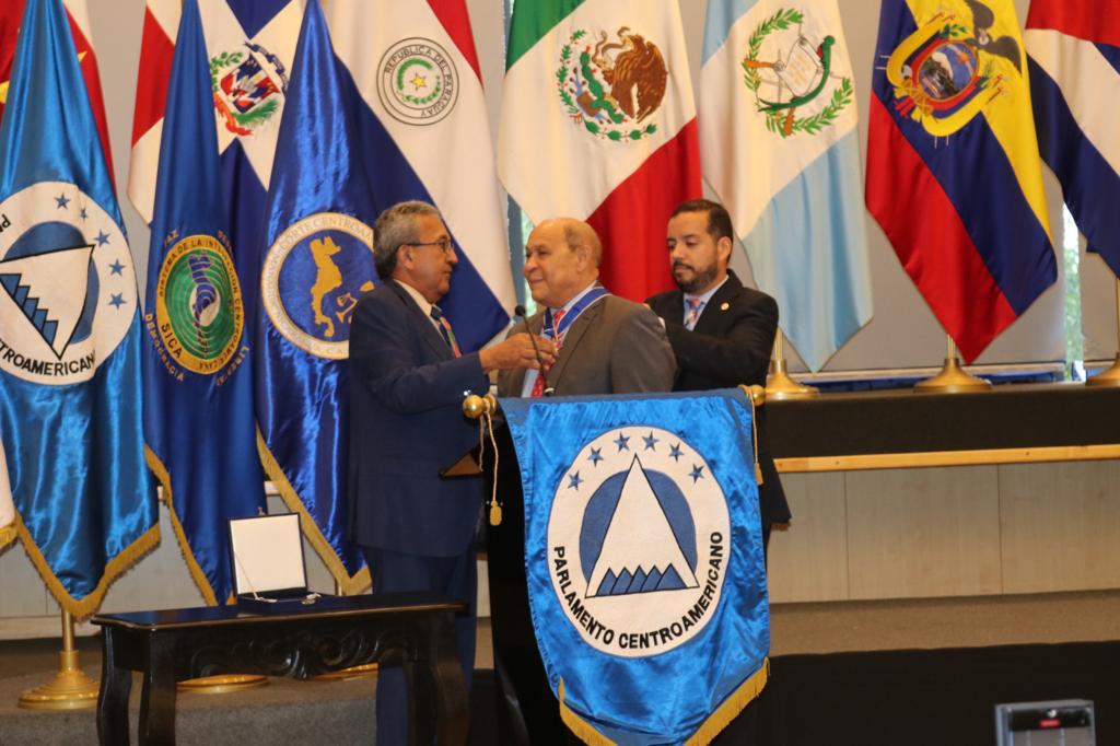 La condecoración se llevó a cabo en el marco de las reuniones de la Asamblea plenaria del PARLACEN, correspondiente a este mes de mayo, celebrada en la ciudad de Panamá.
